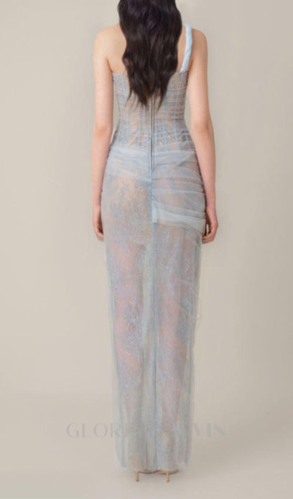 With its stylish one shoulder design and flattering ruched detailing, you'll be the center of attention. Plus, the mesh fabric adds a touch of allure. Get ready to turn heads and feel confident!