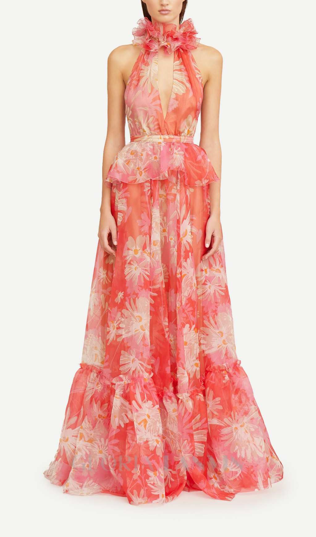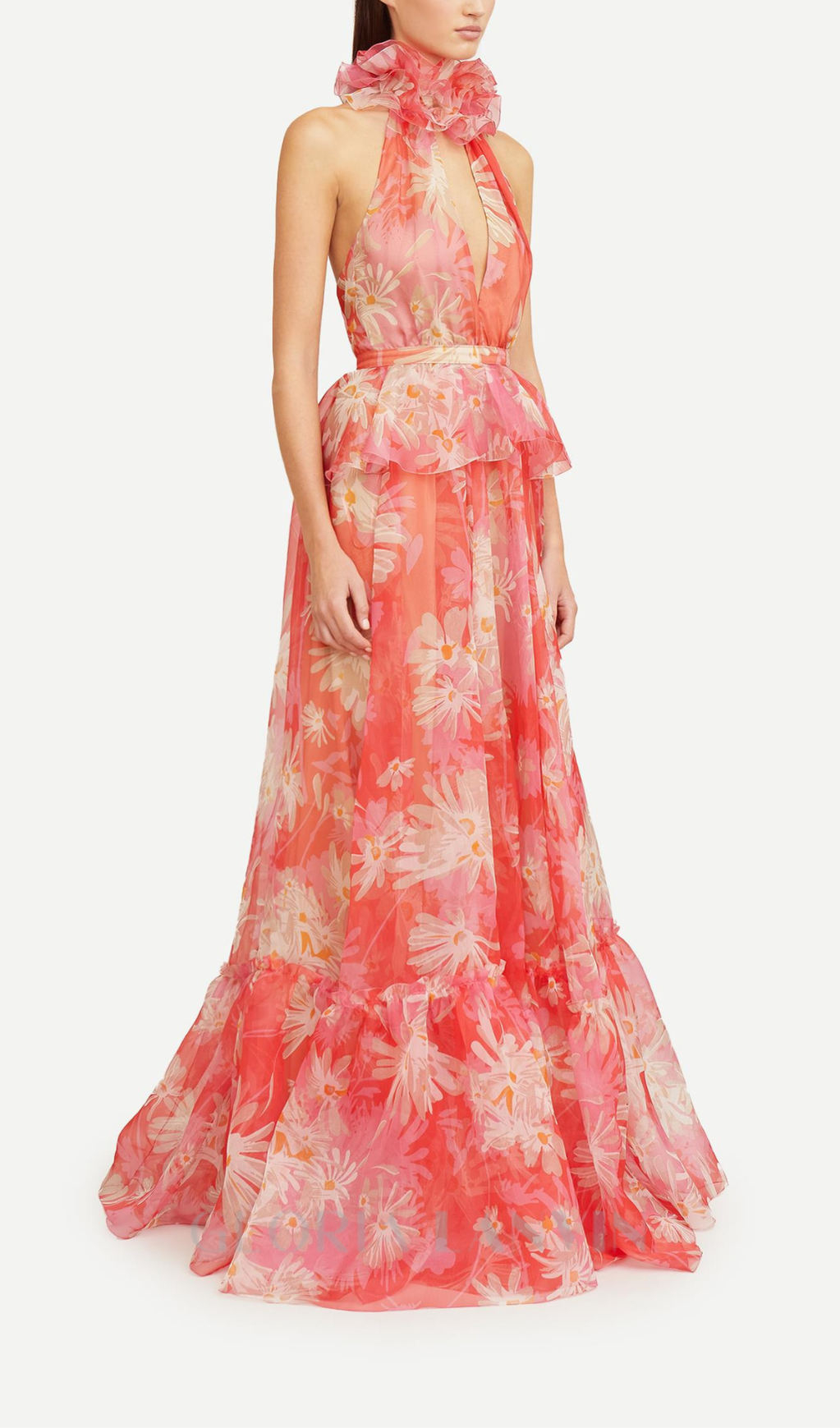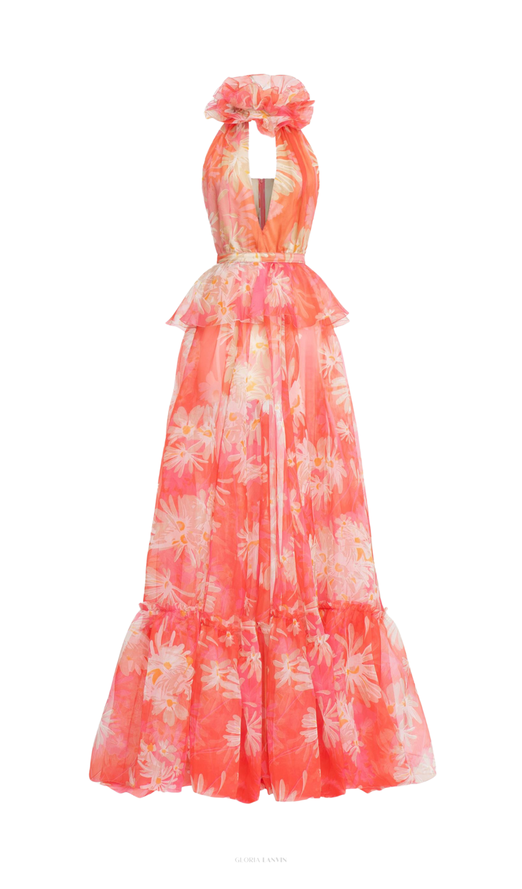 ORANGE FLORAL PRINTED SHEEVELESS HALTER MAXI DRESS – Gloria Lanvin