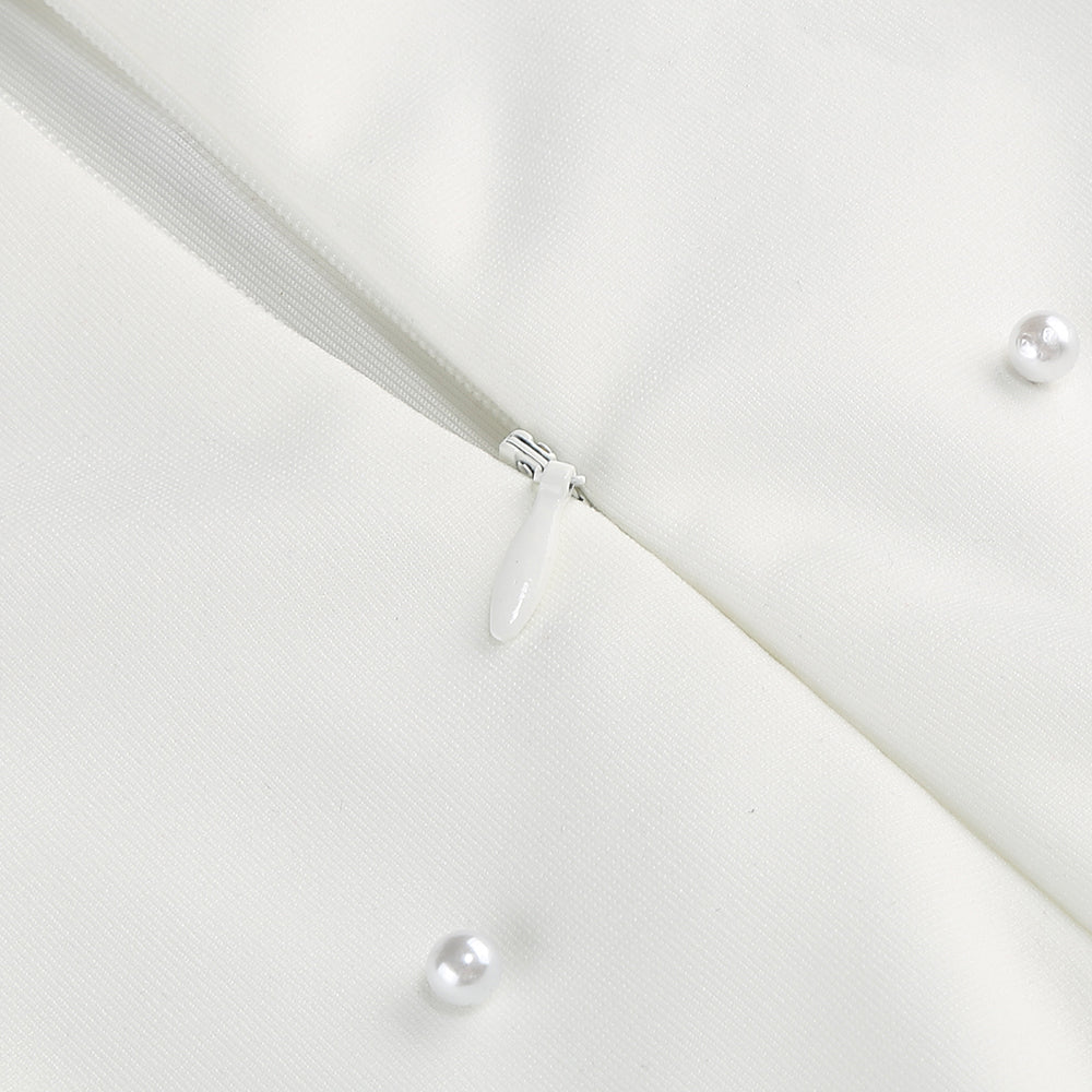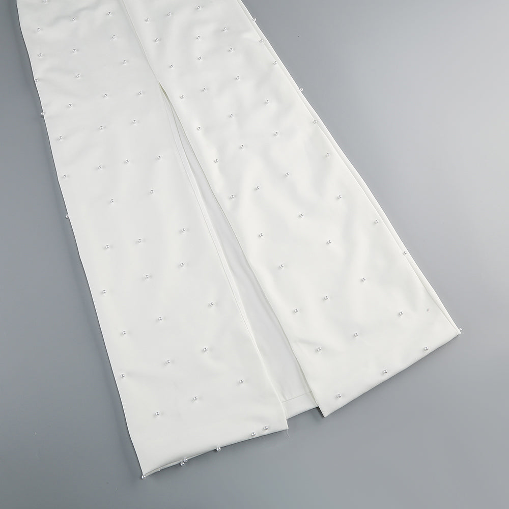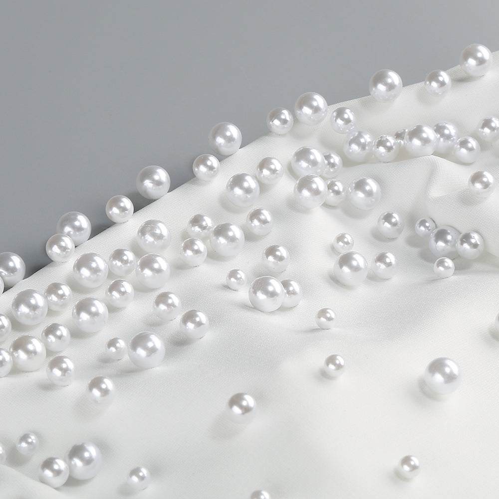 The elegant pearls add a touch of sophistication to the stunning strapless design. Perfect for any formal occasion, this gown is sure to make you feel confident and beautiful. Elevate your style with this breathtaking piece!