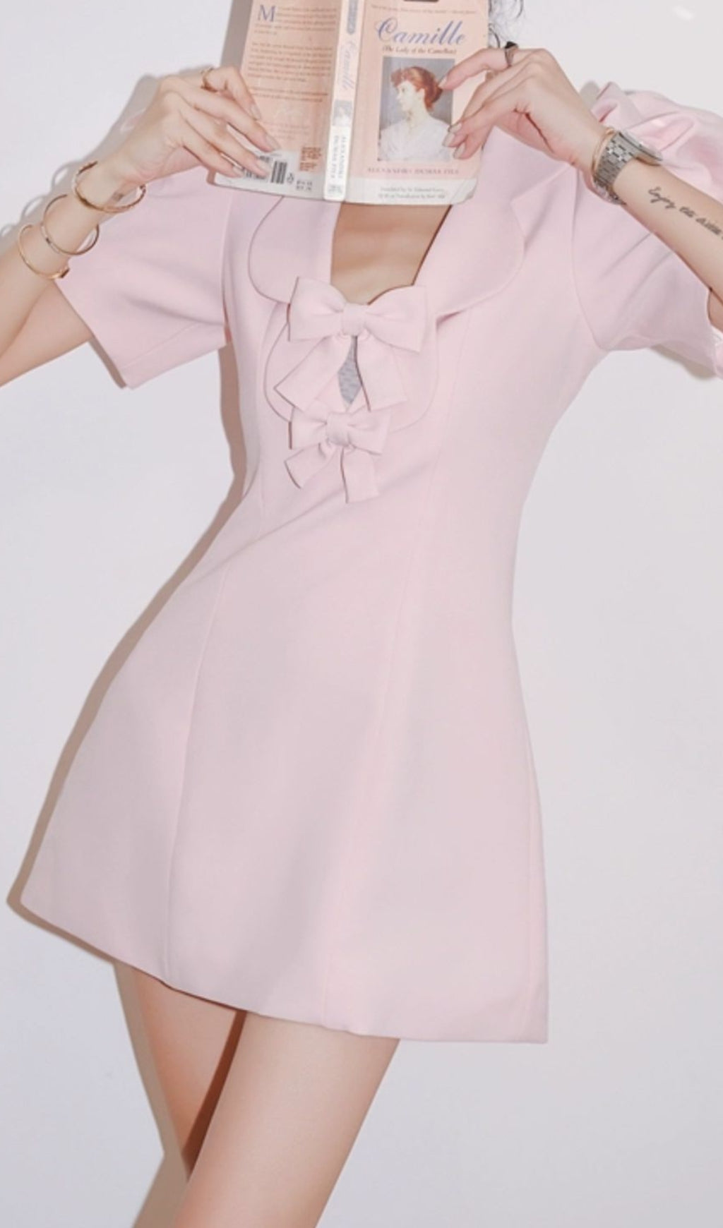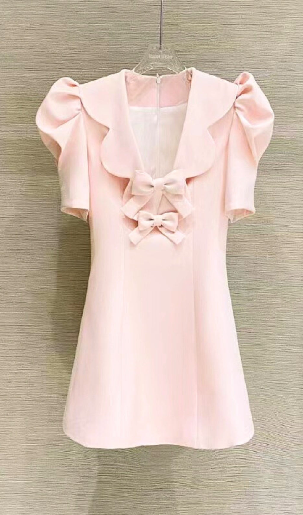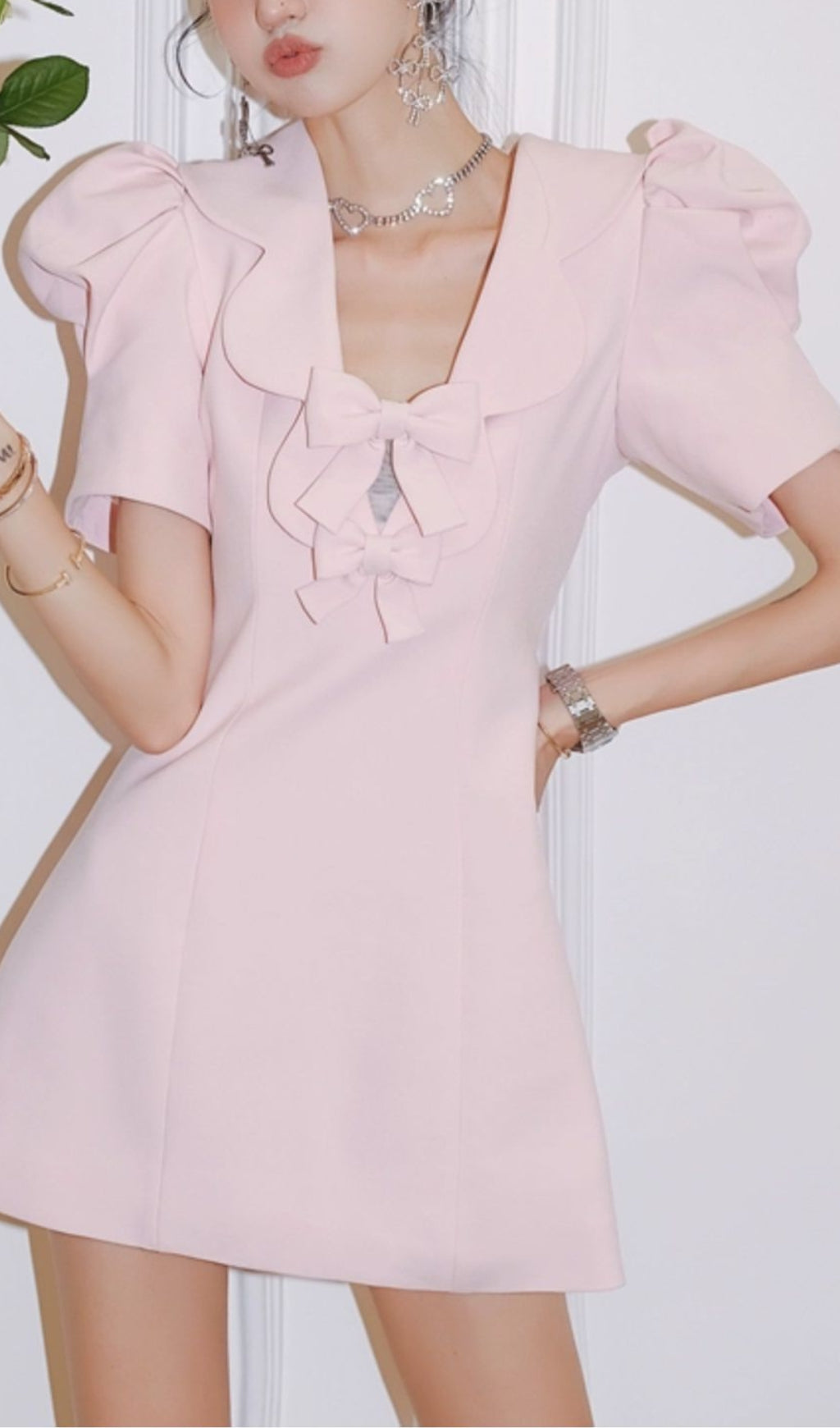 Look sweet and stylish in this Pink Bow Puff Sleeve Mini Dress! With its cute bow detailing and elegant fit, you'll be looking classy and sassy wherever you go. Perfect for dates and other special occasions, this dress will have you ready for anything.