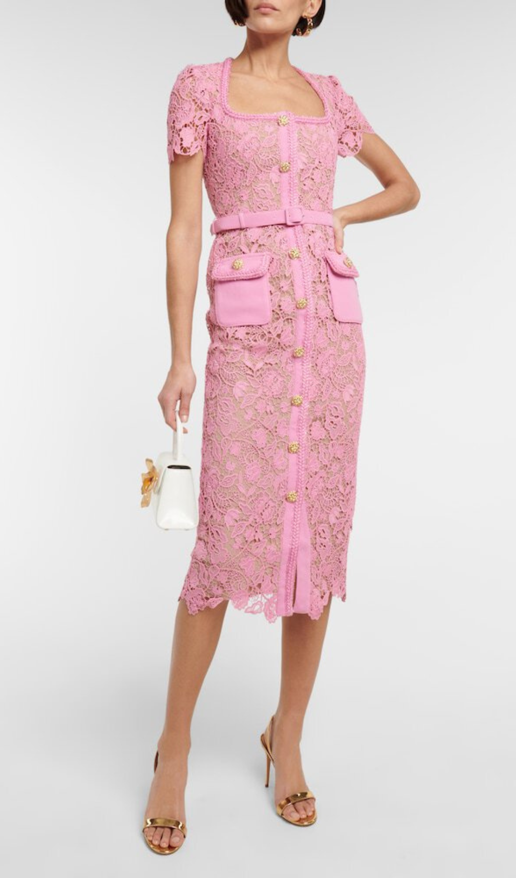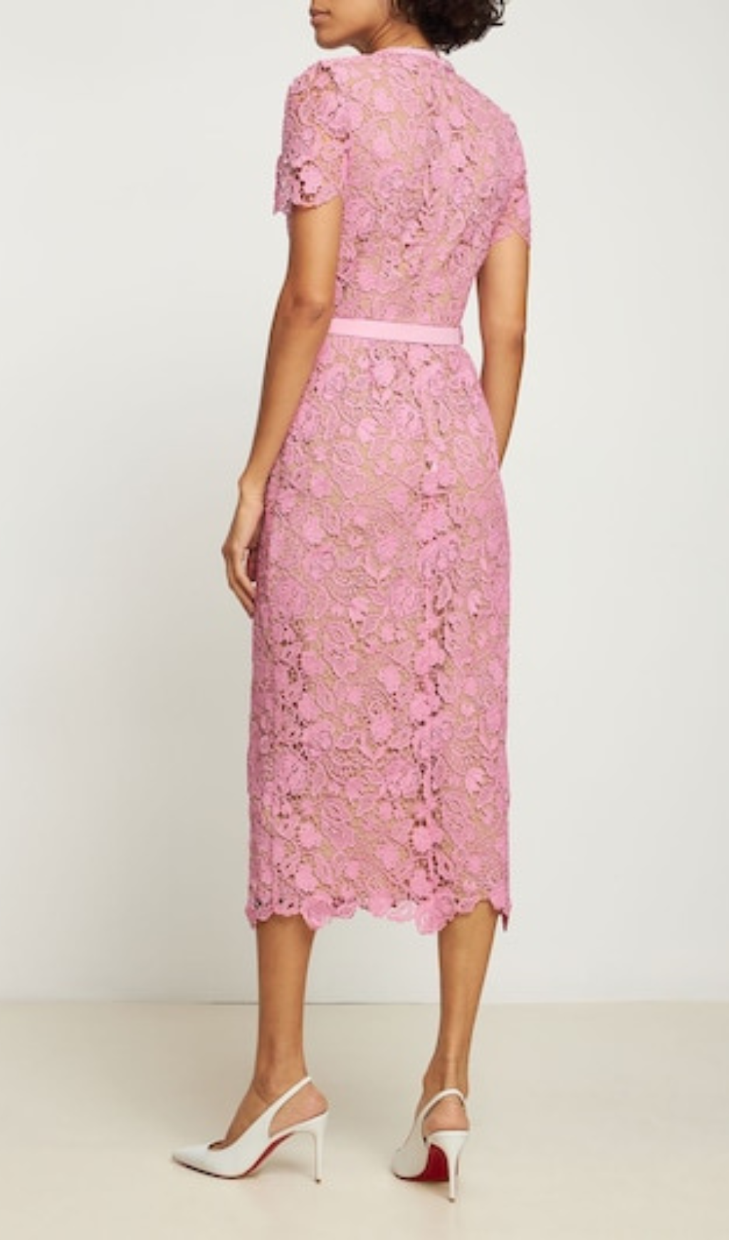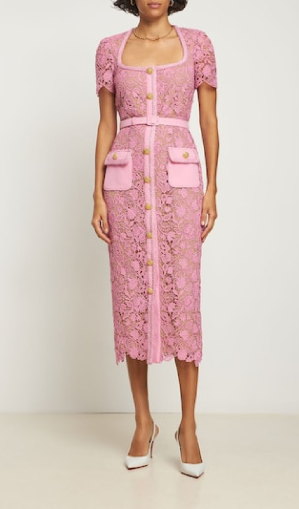 PINK GUIPURE LACE MIDI DRESS – Gloria Lanvin