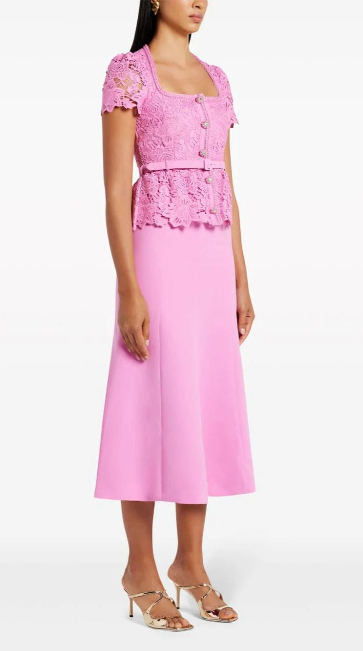 Featuring delicate lace detailing and a tailored fit, this dress is sure to turn heads at any event. Sure to make you feel like a million bucks (or at least a few thousand), this dress is a must-have for any fashion-forward individual. Don't miss out, get yours before it's gone!"