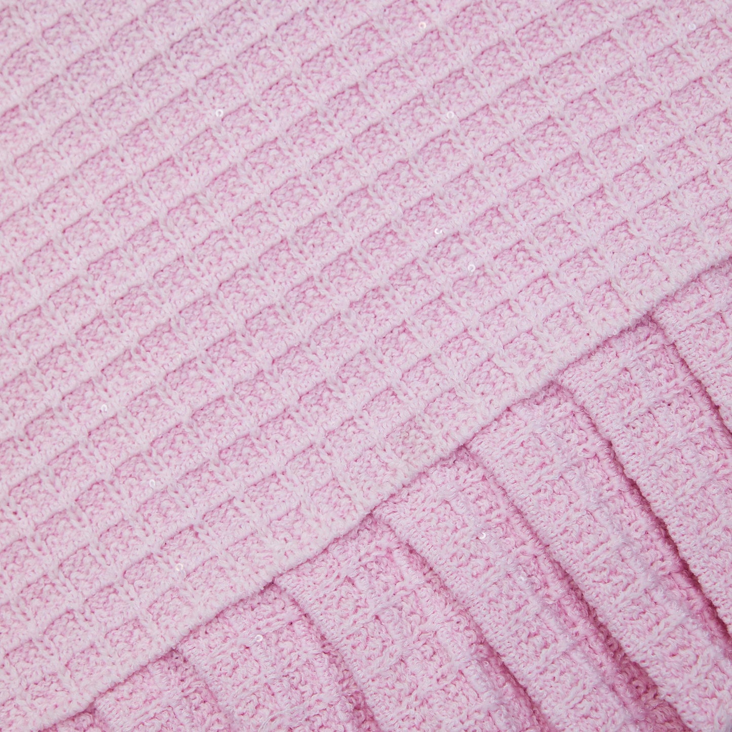 The soft, textured knit fabric boasts a dazzling display of pink sequins, making it perfect for any occasion that calls for a little sparkle. Stand out from the crowd and bring a touch of glamour to your wardrobe today!