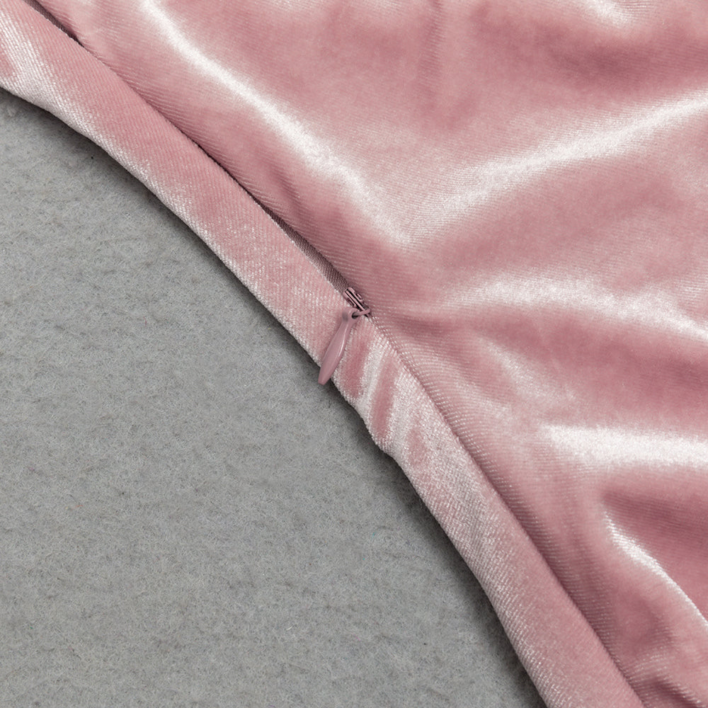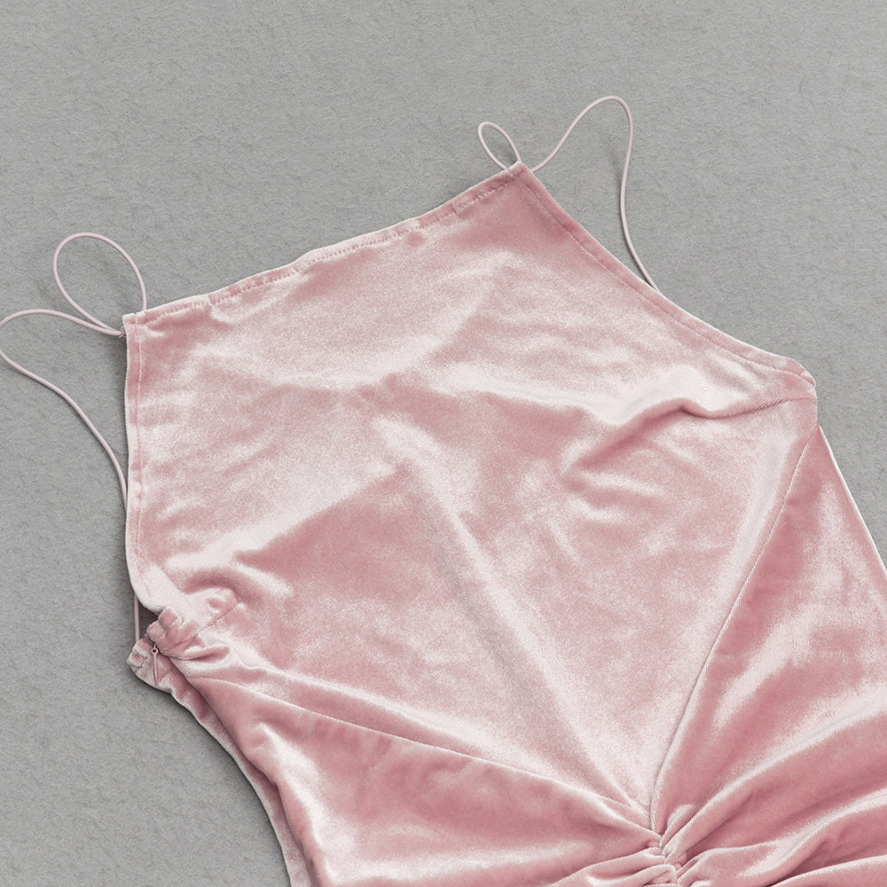 This lavish PINK SUSPENDER BACKLESS VELVET PLEATED HIP DRESS is sure to make a statement. Crafted from the finest velvet, this stunning dress hugs the curves in a sophisticated way, with intricate pleating and daring backless suspenders for an exclusive look.