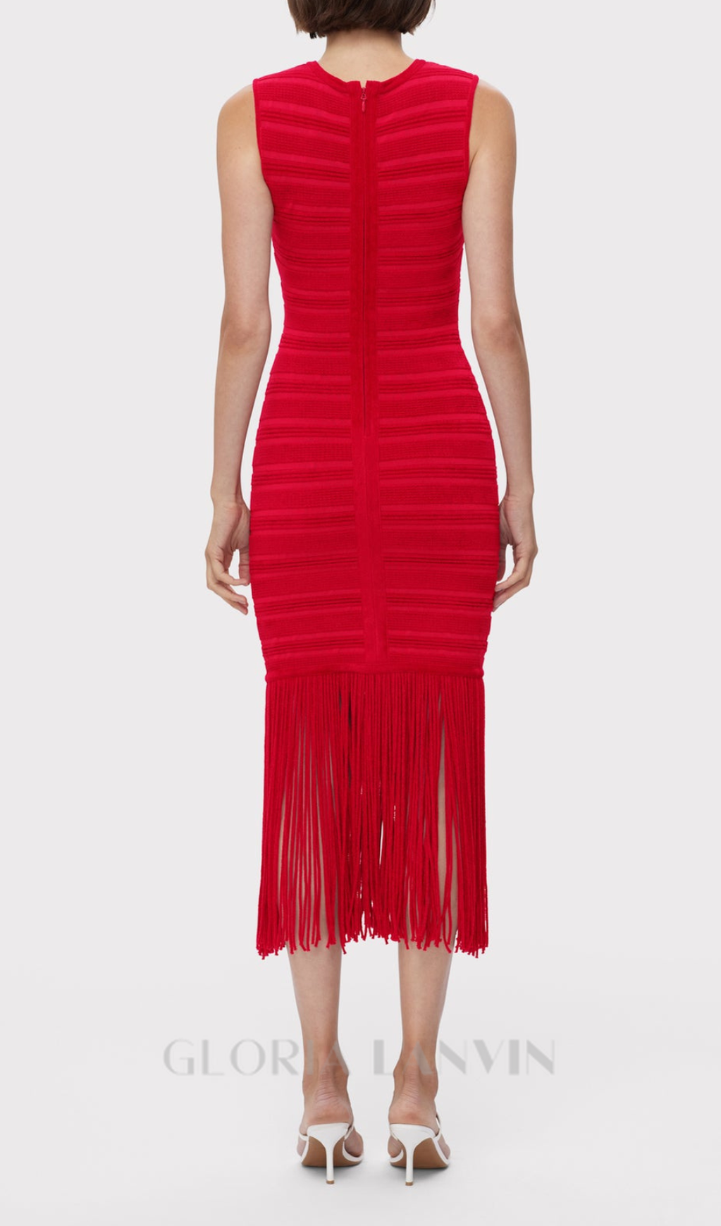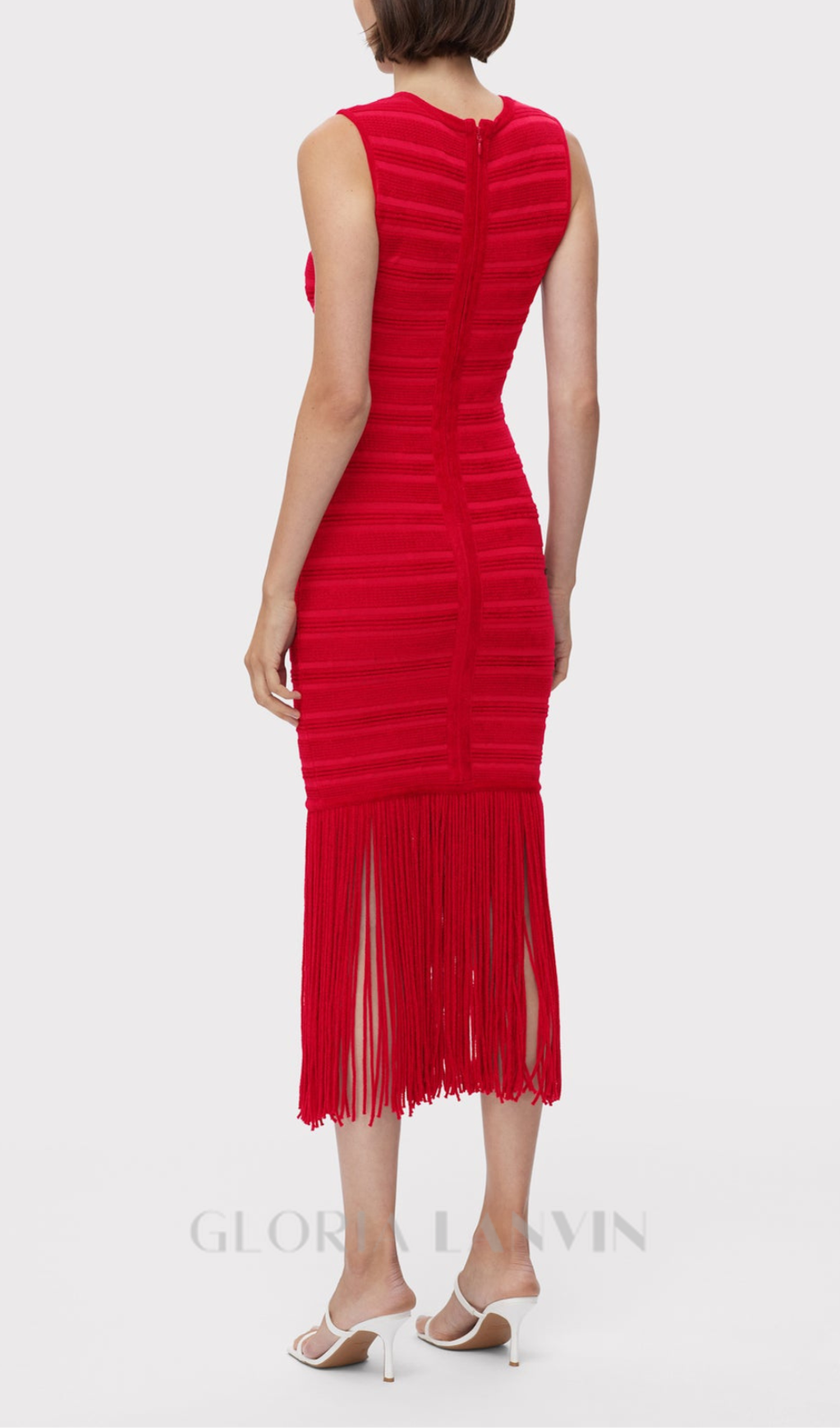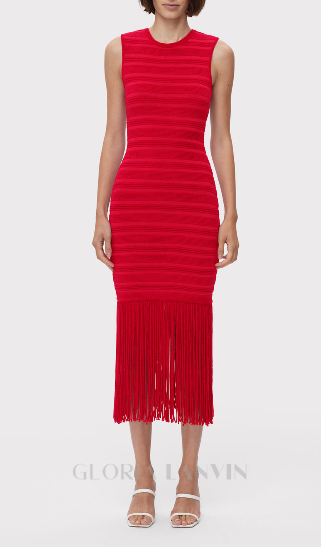 The soft, luxurious fabric is perfect for any occasion and the elegant design will make you stand out in the crowd. Embrace the fringe trend and make a statement with this dress. Get ready to turn heads and feel confident in this must-have piece!