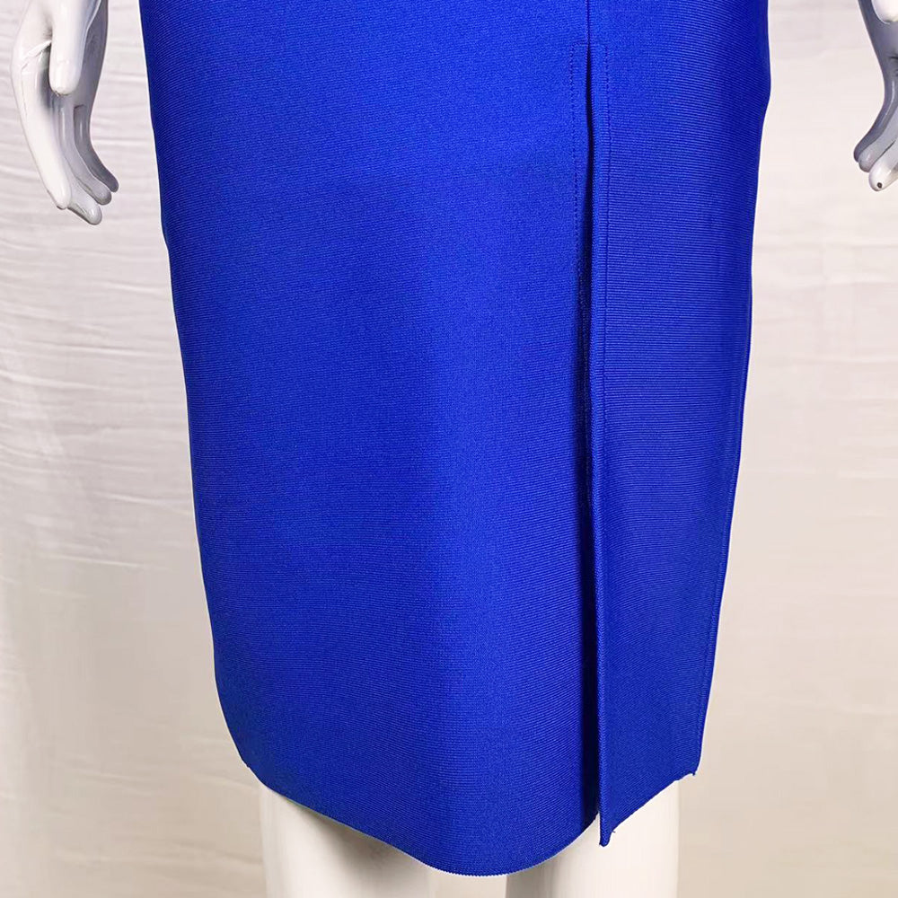 The rhinestone straps add a touch of glam to the cut-out and split details, making it perfect for a night out. Get ready to shine in this must-have dress!