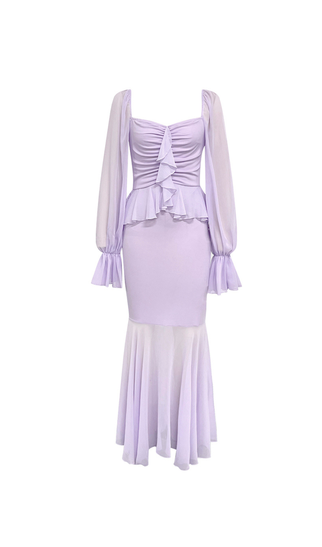 The ruched design and ruffle trim create a flattering mermaid hem that adds a fun and playful element to your outfit. Perfect for adding a feminine touch to any occasion.