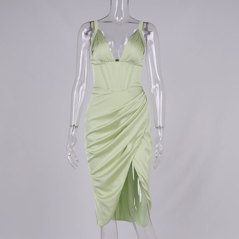 This blue beauty is sure to turn heads! Our SATIN CORSET MIDI DRESS IN GREEN has the perfect blend of sophistication and sexiness. Its corset-style top is sure to show off your curves in all the right places. Jazz up any night out with this stunner!