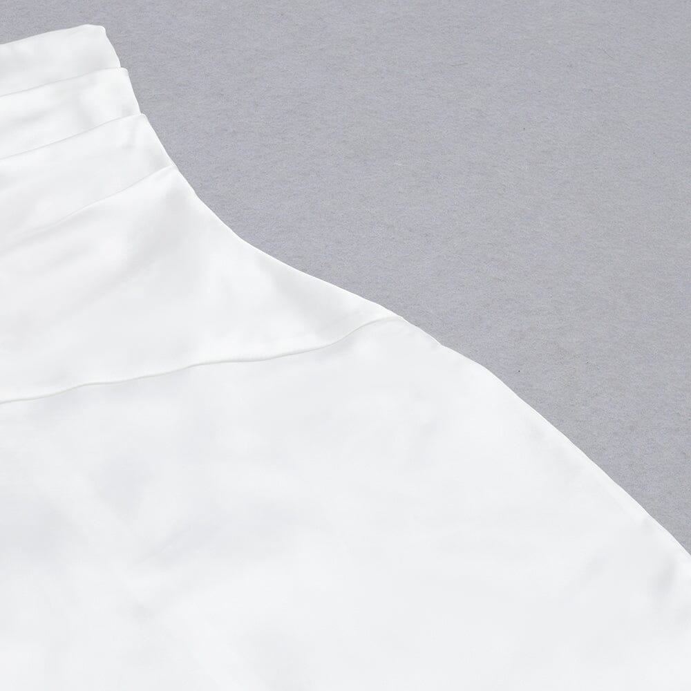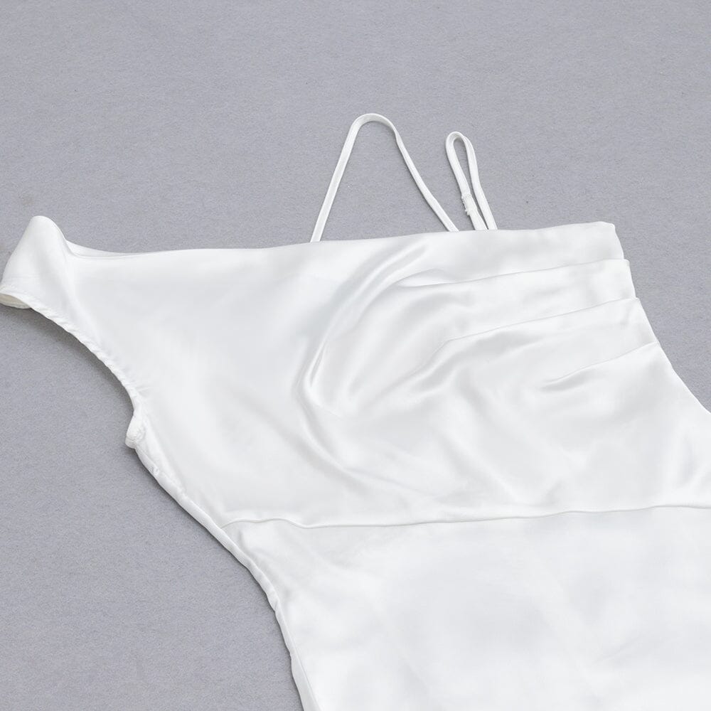 SATIN ONE SHOULDER MIDI DRESS IN WHITE