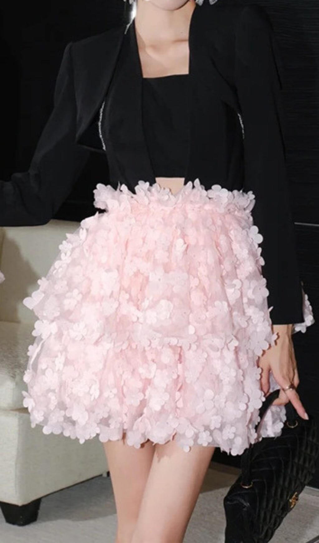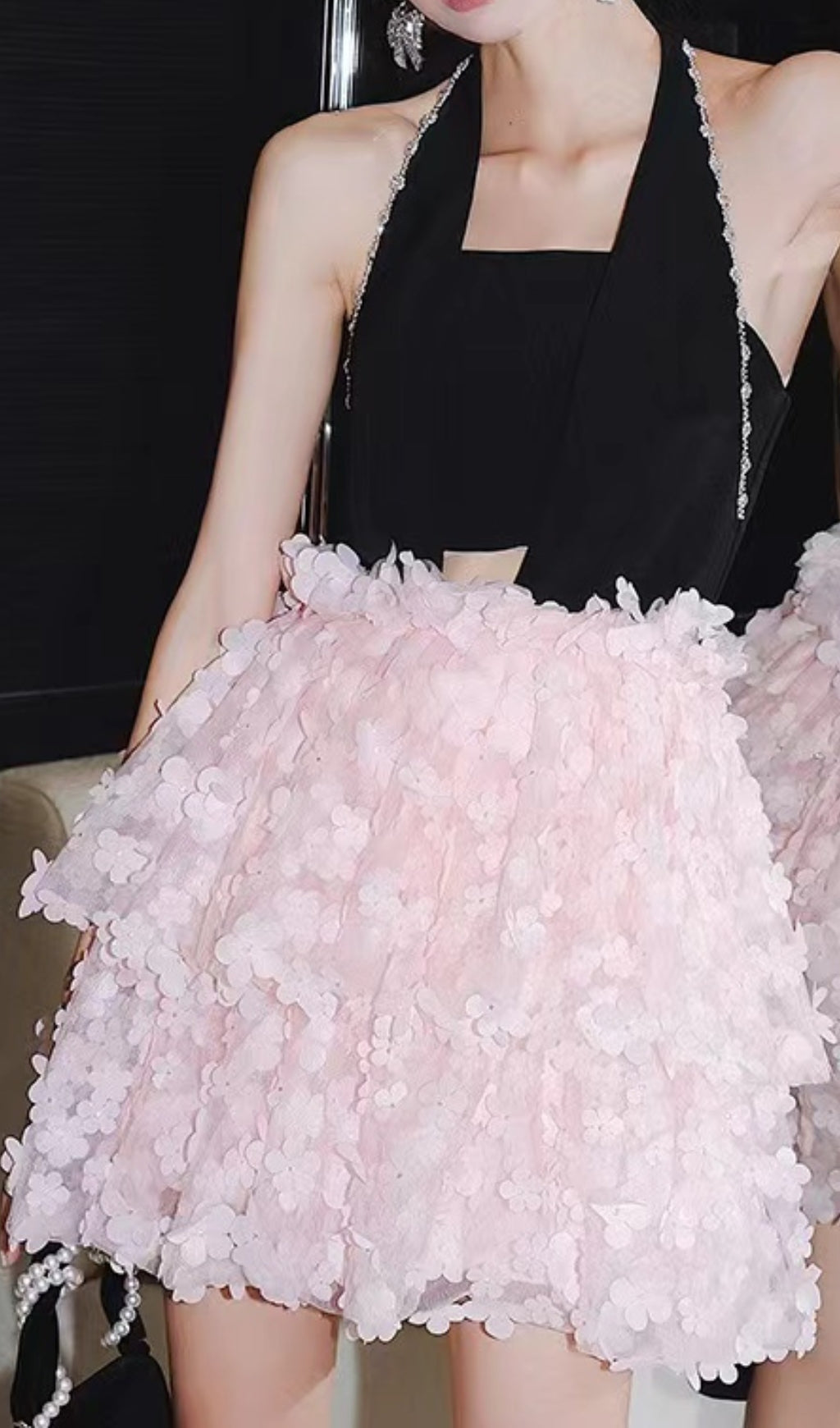 This incredibly beautiful skirt tells the language of flowers, and expresses the sexiness and romance of a small woman. It combines the neat street culture of the top with the retro Baroque style of the bottom. The three-dimensional cut bow and dazzling decorations bring a strong sense of design, which can be worn on formal occasions or recreational occasions.