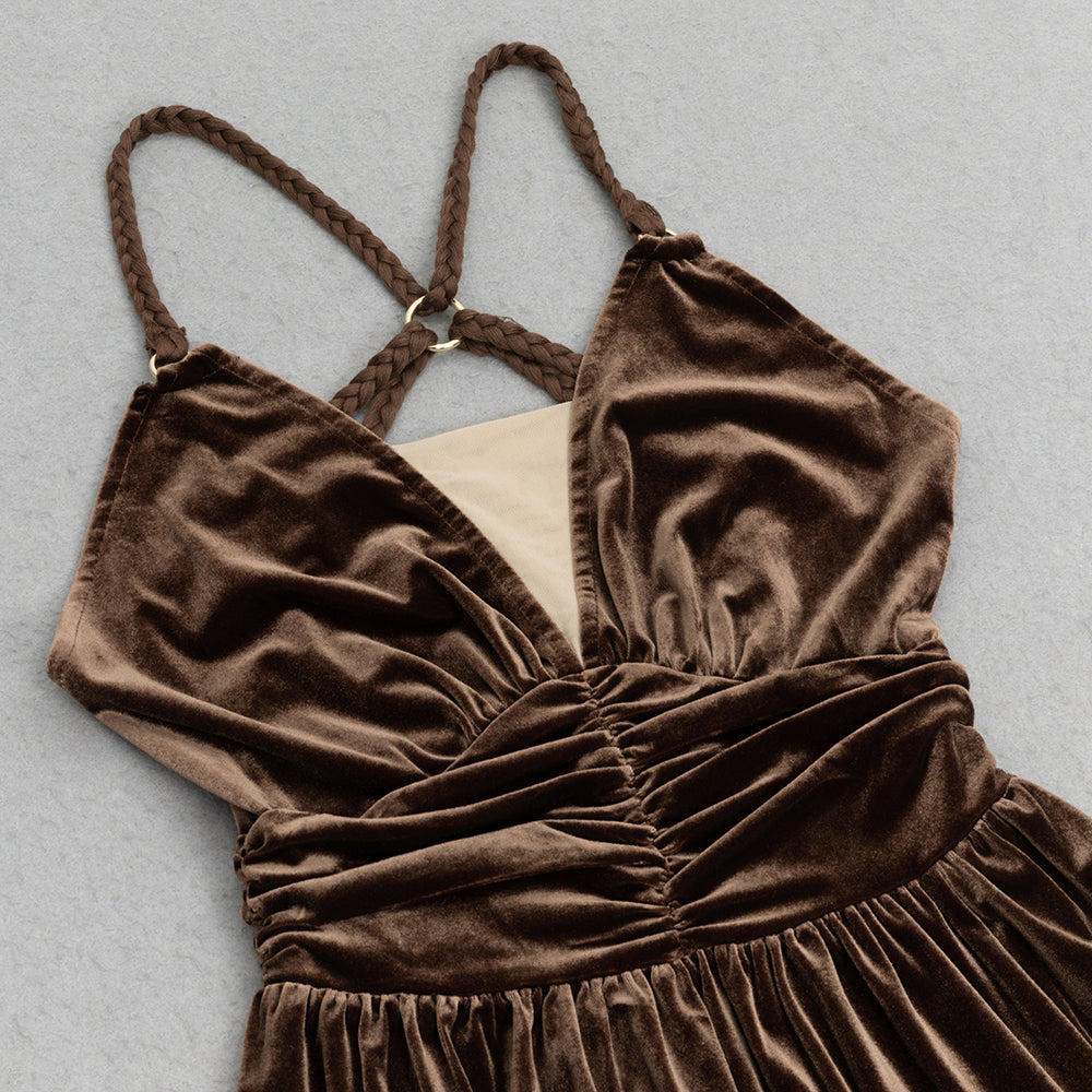 SLEEVELESS OPEN BACK BRAIDED ROPE CROSS DESIGN SUSPENDER MAXI DRESS – Gloria Lanvin