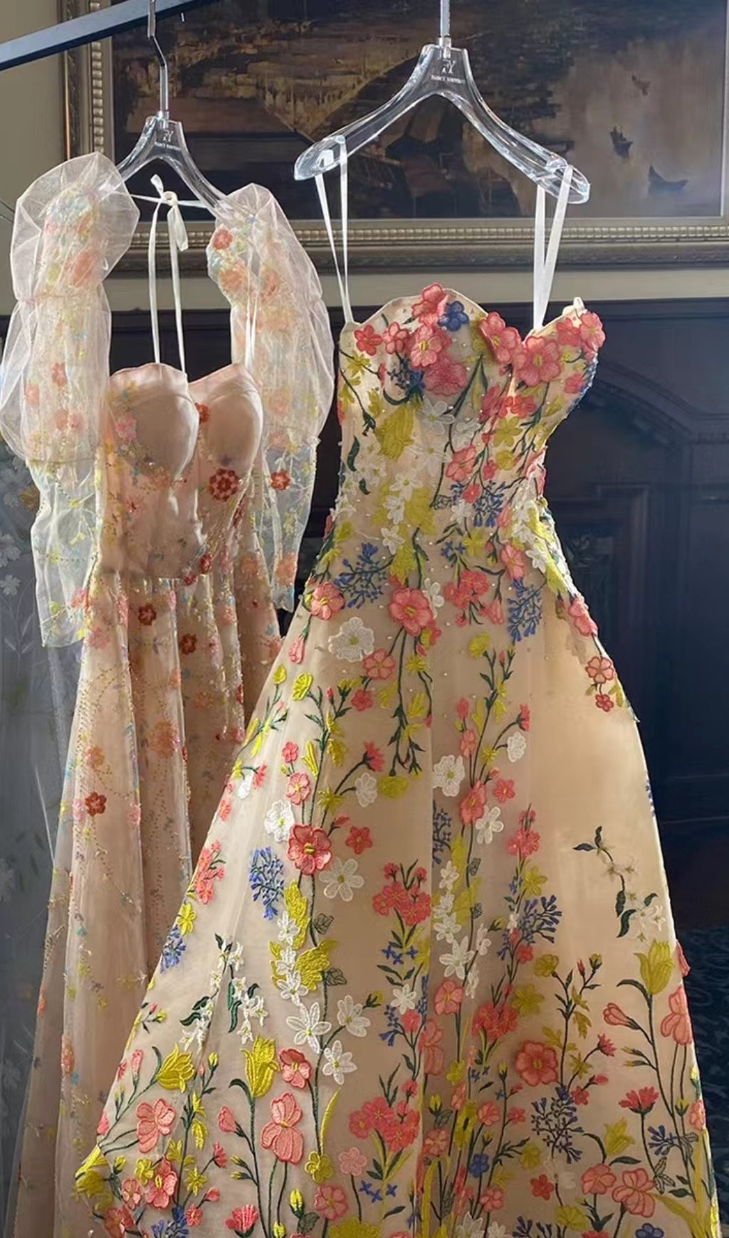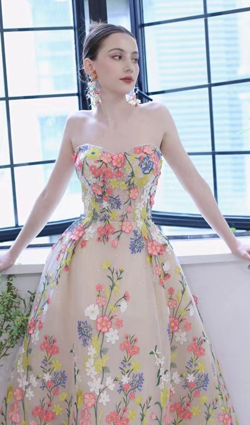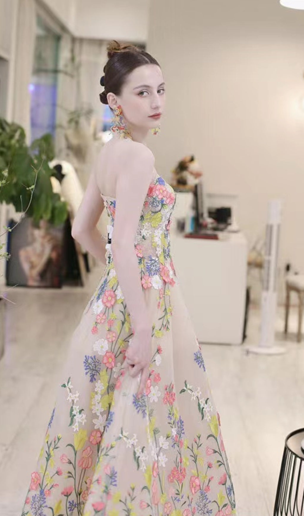 The beautiful floral design combined with 3D flowers and crystals creates a timeless look that is sure to make you feel like a princess. With its comfortable fit and flattering length, this dress is perfect for any special occasion. Don't miss out on the chance to shine in this gorgeous formal dress.
