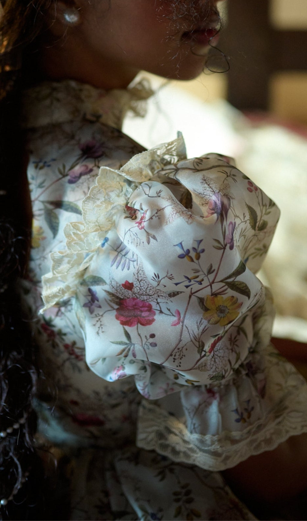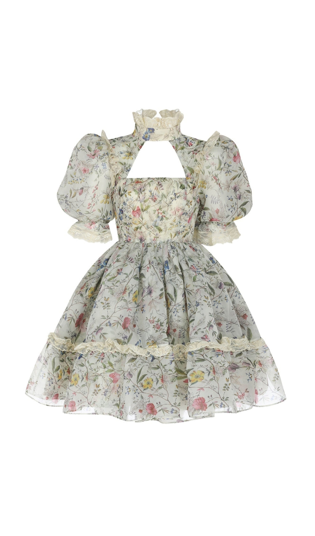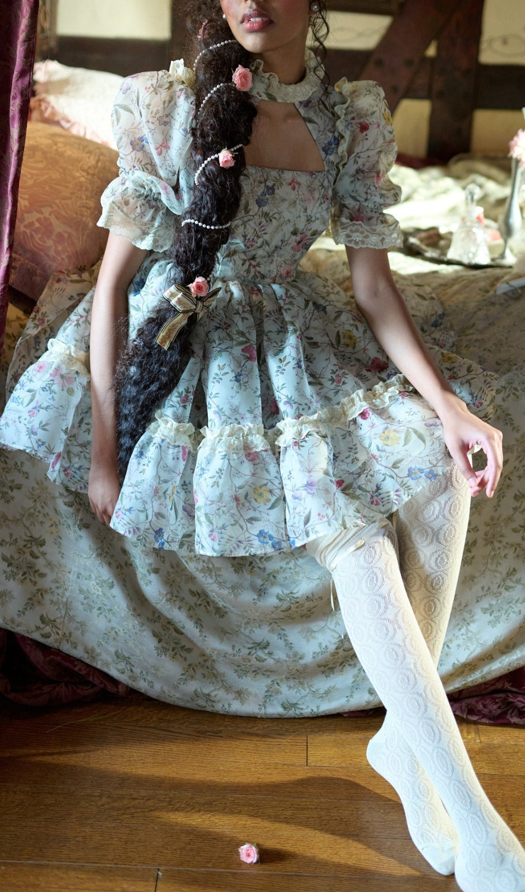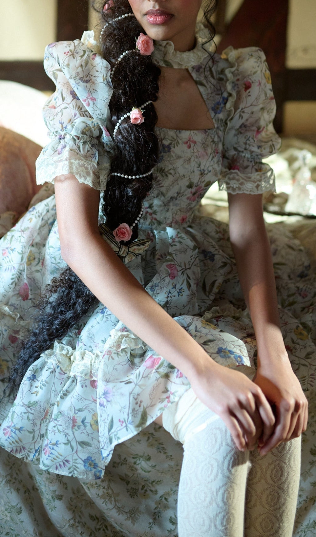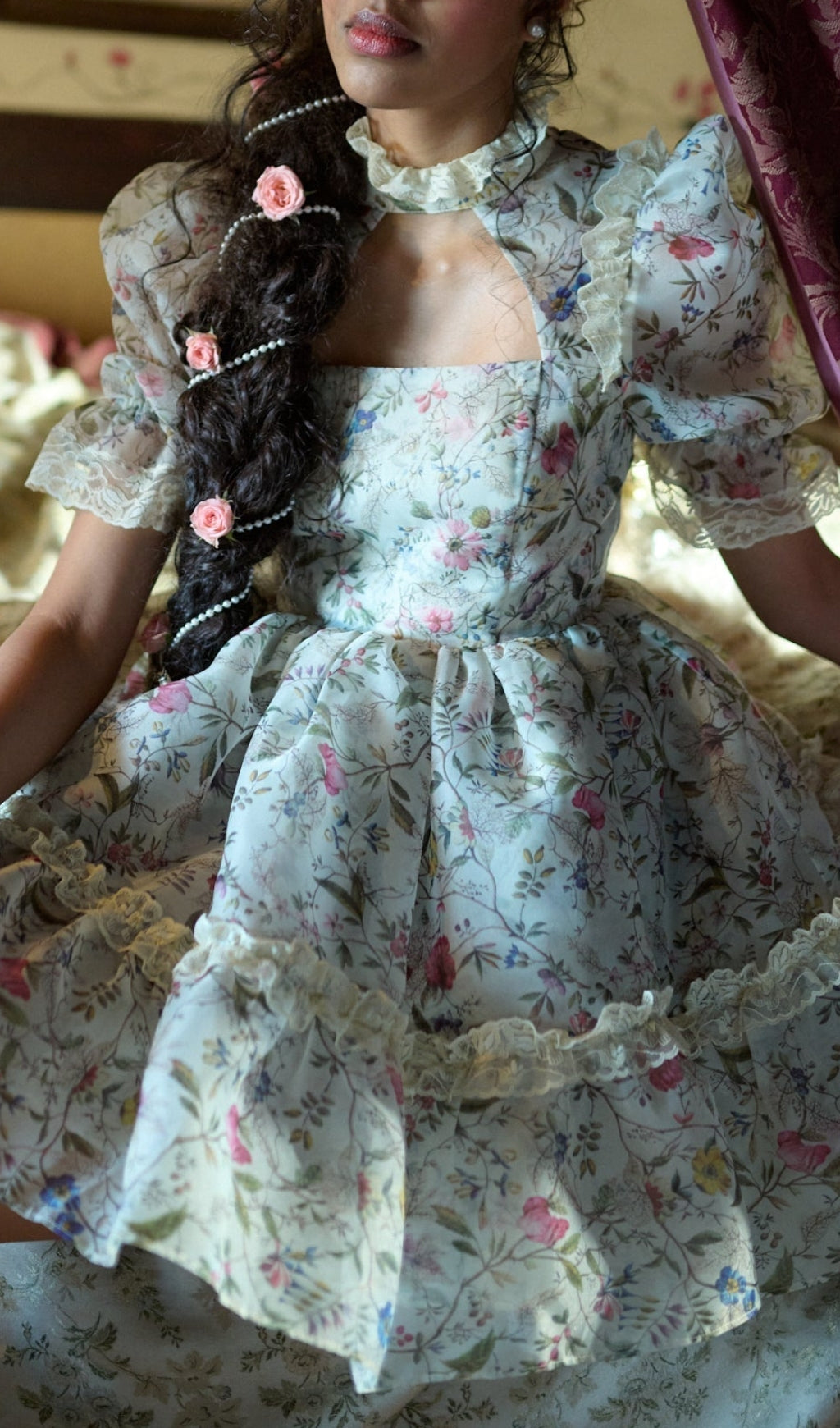 Perfect for a dress reimagined for today's rococo obsessed dreamer. Its puff sleeves, high waist, and high neck collar bring an unforgettably vintage babydoll look into your life. Prepare for a night of dancing and trays filled with champagne, this dress was certainly made for spinning!