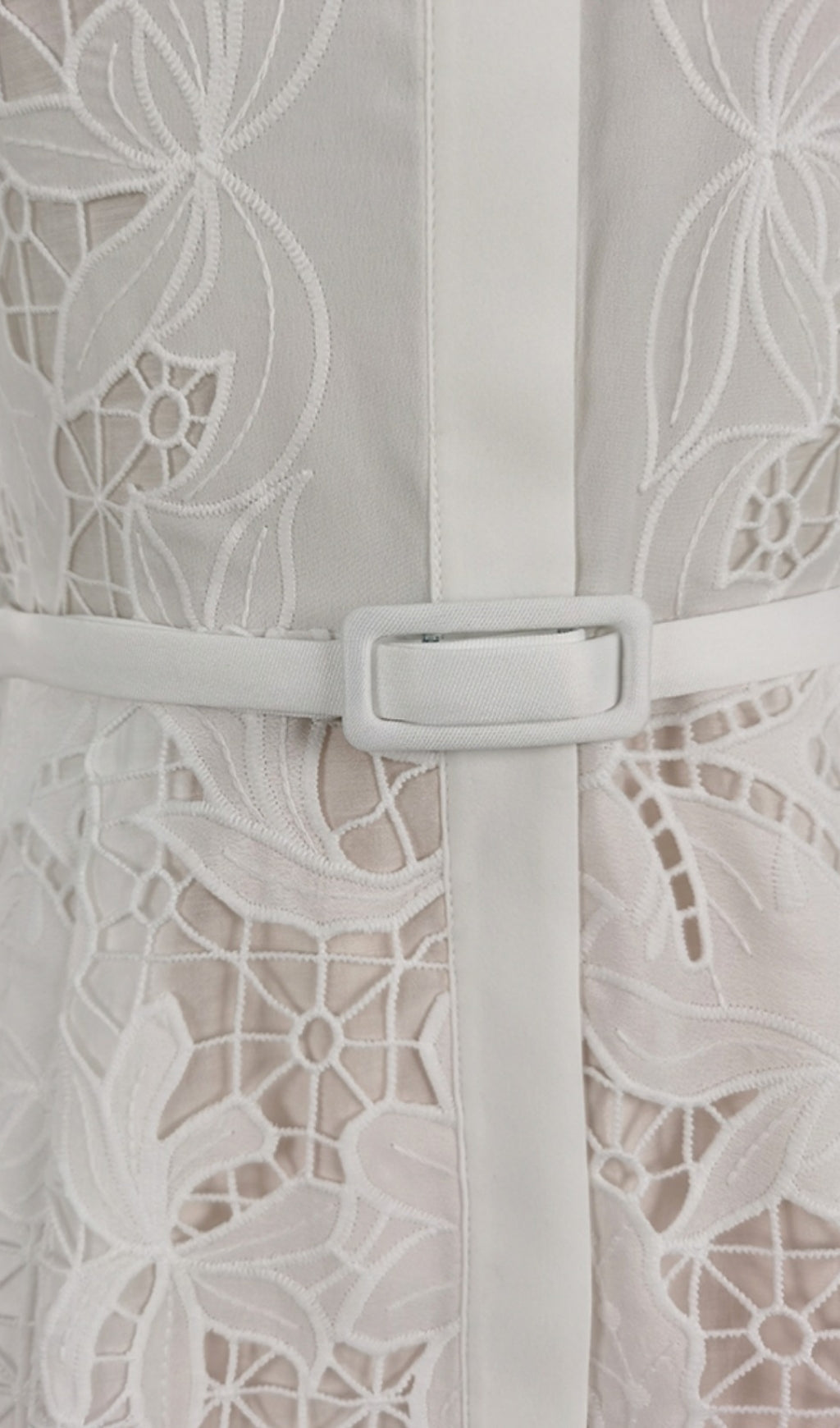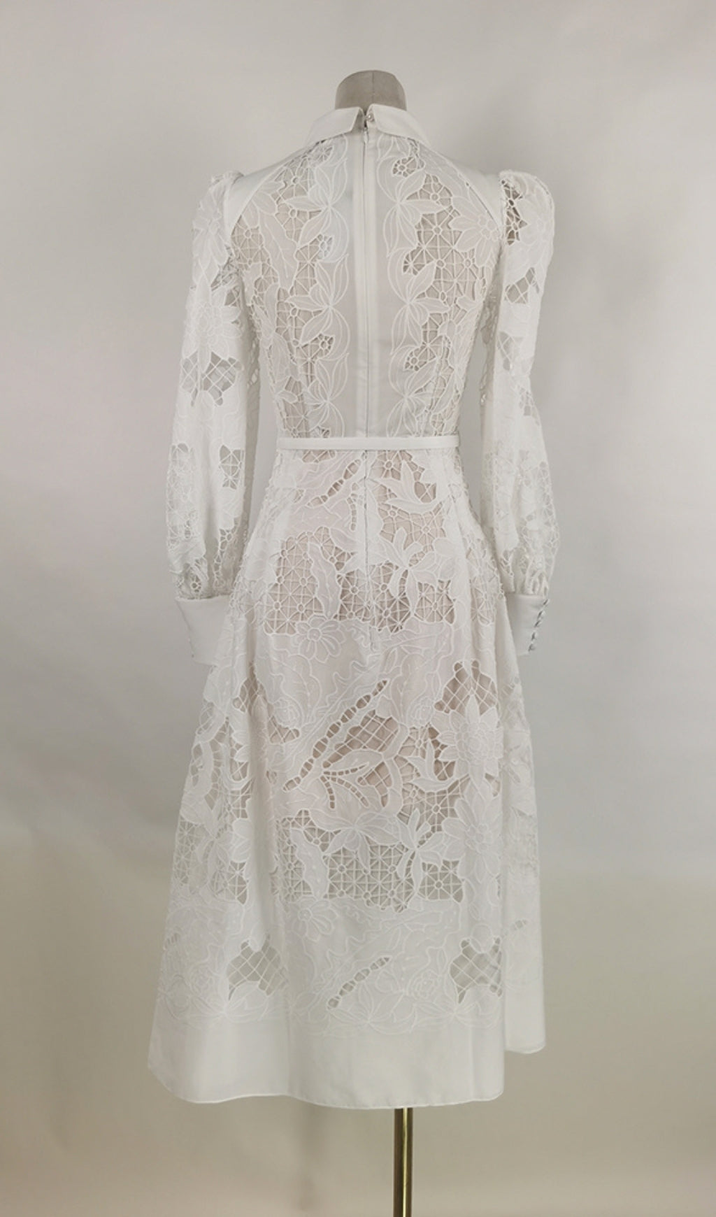 This stunning midi dress will make a statement for any occasion. Made from exquisite white lace, it's detailed with intricate embroidery, and finished with a full hem. Perfect for a classic and timeless look.