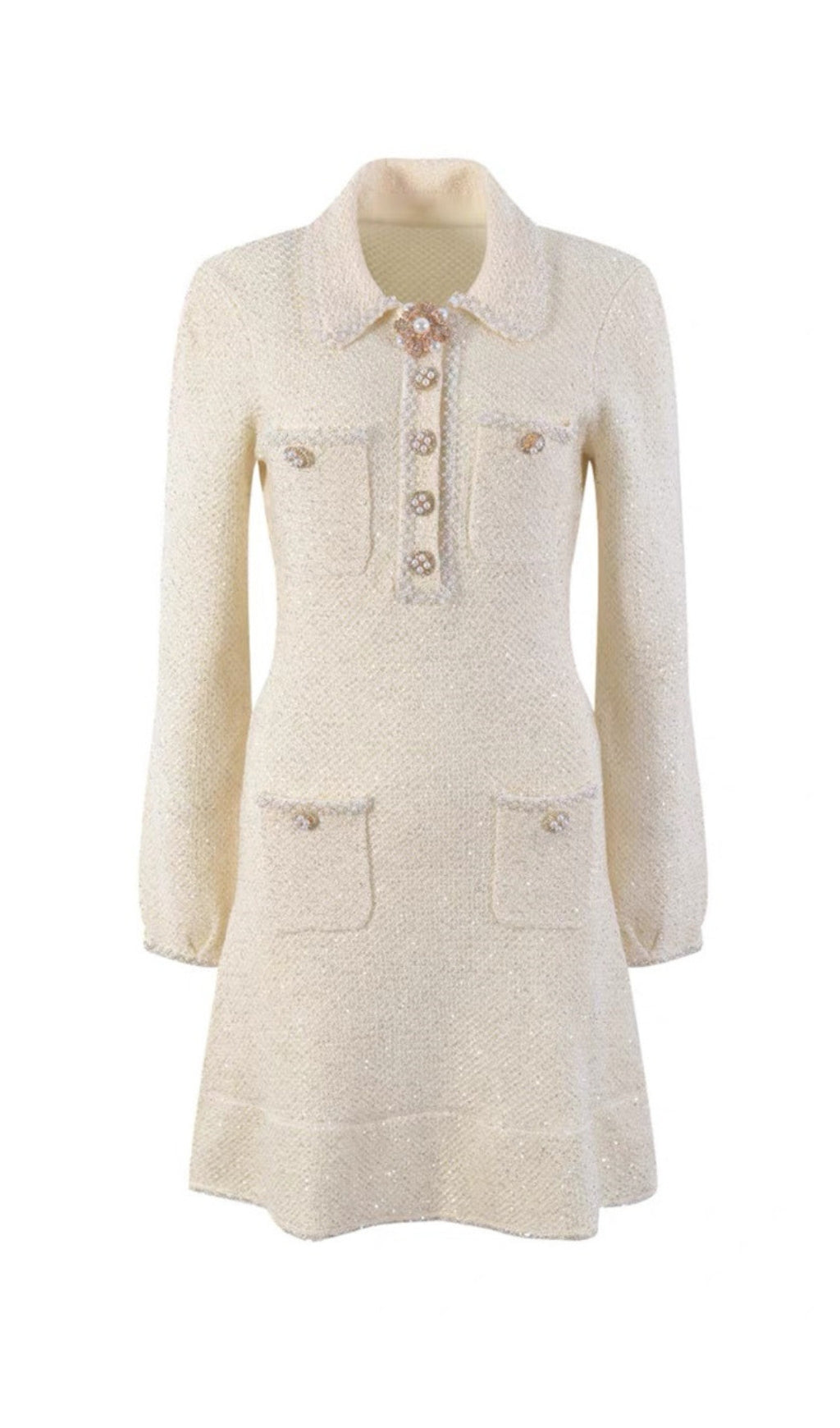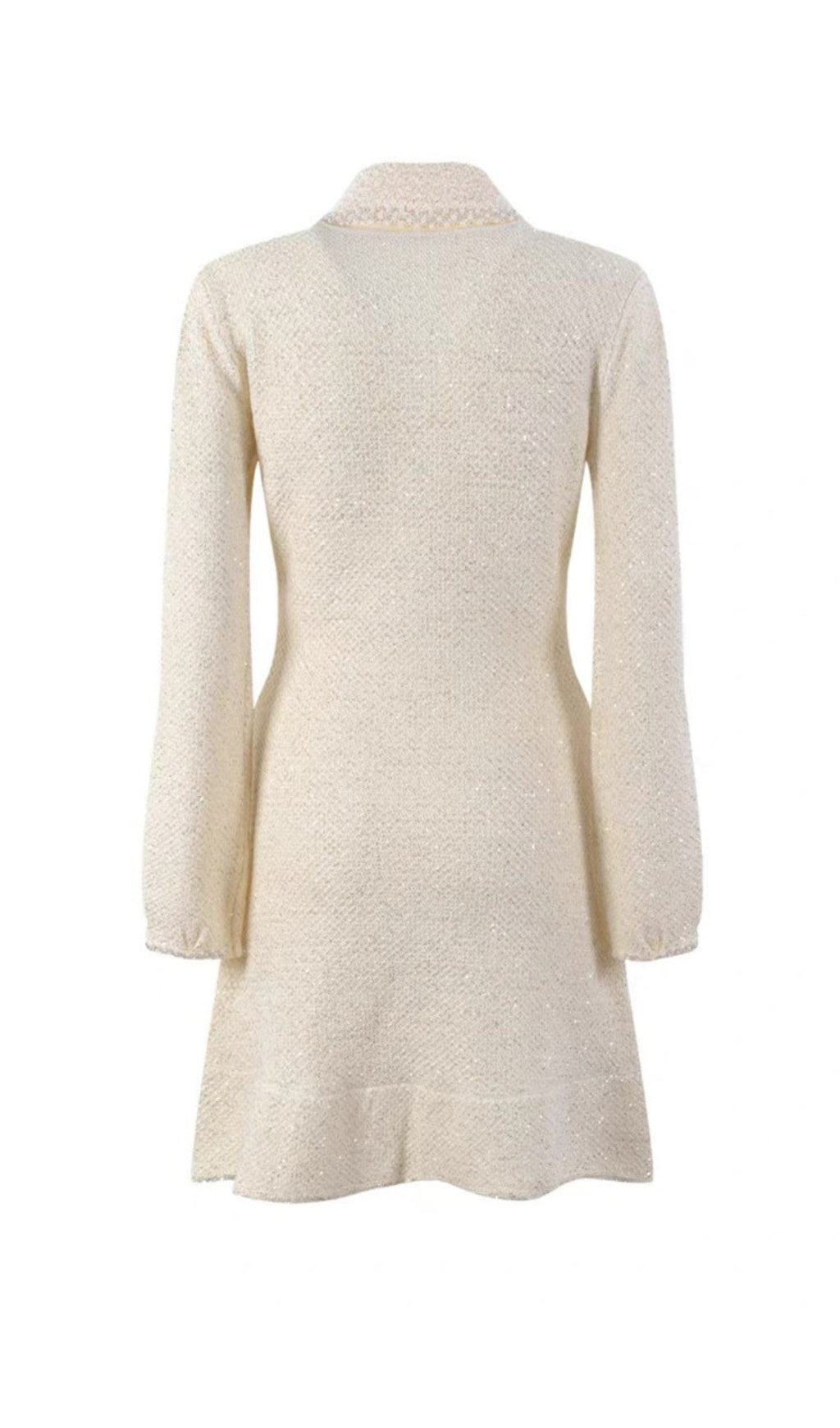 Sparkle and shine in our EMBELLISHED SEQUINED BOUCLÉ-KNIT MINI DRESS, designed to add a touch of glamour and opulence to any occasion! Crafted from a luxurious bouclé-knit fabric and embellished with shimmering sequins, this dress is sure to turn heads. Further enhanced by the flattering mini length, it'll be sure to make you stand out in style.